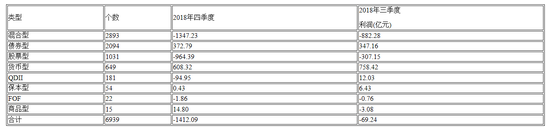 2018年四季度各类基金盈亏表